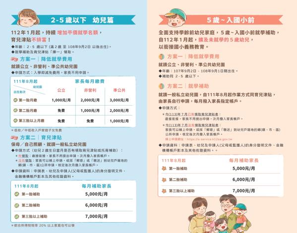 提供2至未滿5歲幼兒育兒津貼及5歲至入國民小學前幼兒就學補助線上申辦服務,得以自然人憑證或健保卡申辦。