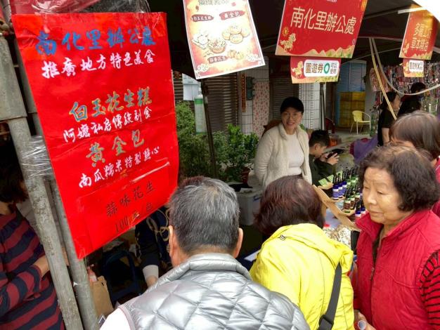 現場設有特色市集,積極推廣南化優質的在地農特產品,讓民眾支持小農、買到最道地的山城風味。為了讓家長放心、孩子開心,現場特別規劃了兒童氣墊遊戲區,打造專屬小朋友的春節嘉年華。除熱鬧活動外,南化區公所特別串聯消防隊、戶政事務所及衛生所等多個單位,現場提供各項實用的業務與生活宣導。從防火安全到政令知能,讓民眾在歡慶佳節之餘,也能獲取守護日常生活的專業知識。
